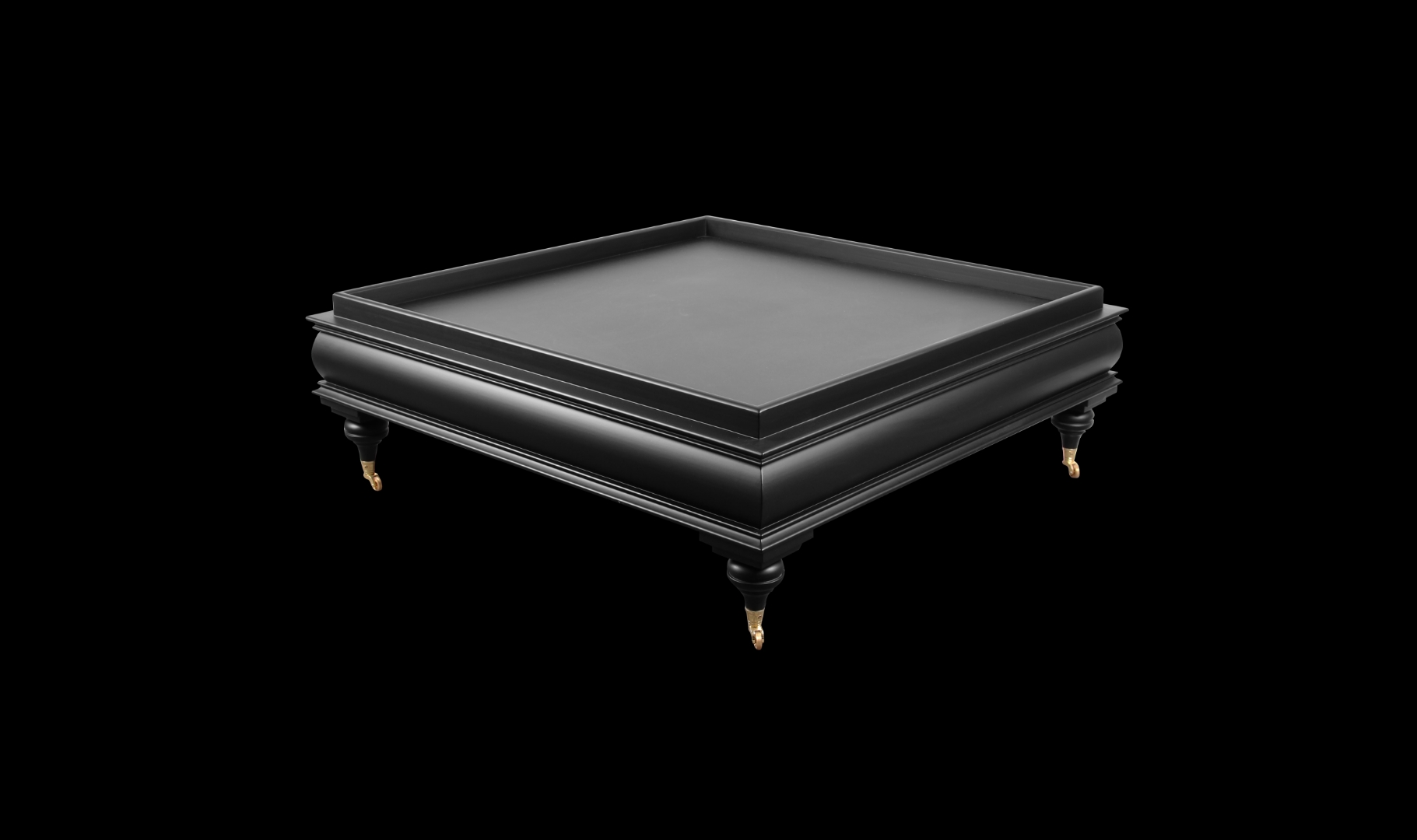 Crafted from solid black with a hand finish, every thoughtful detail inspired by Ralph Lauren's New Bohemian coffee table is meticulously executed, from the sculptural turned legs to the sculpted inlaid handles. Reminiscent of late 19th-century designs, the generous surface is paired with solid brass casters for easy movement.