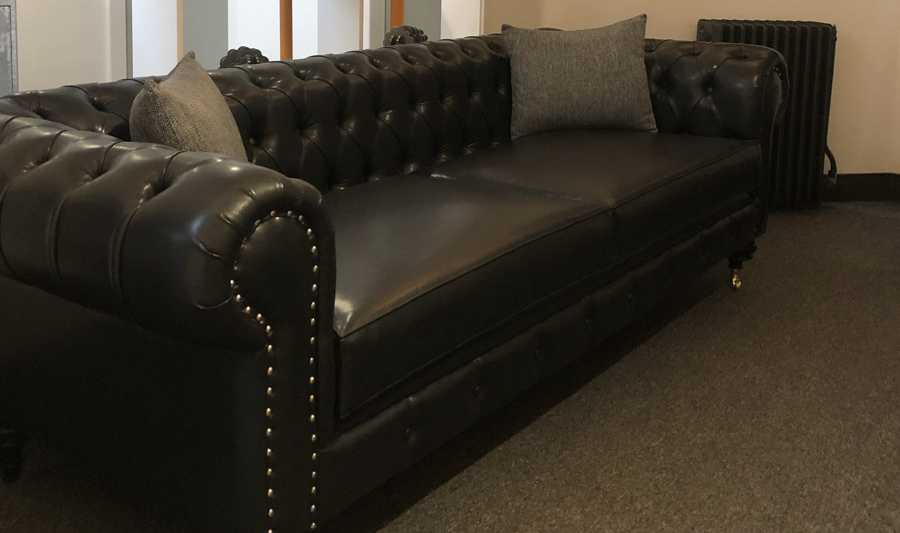 Chester presents a modern and generously sized take on the timeless Chesterfield style. Its substantial scroll arms are adorned with lavish deep buttoned upholstery, perfectly accompanied by a stylish blend of diverse and chic accent cushions, culminating in a truly captivating aesthetic.
